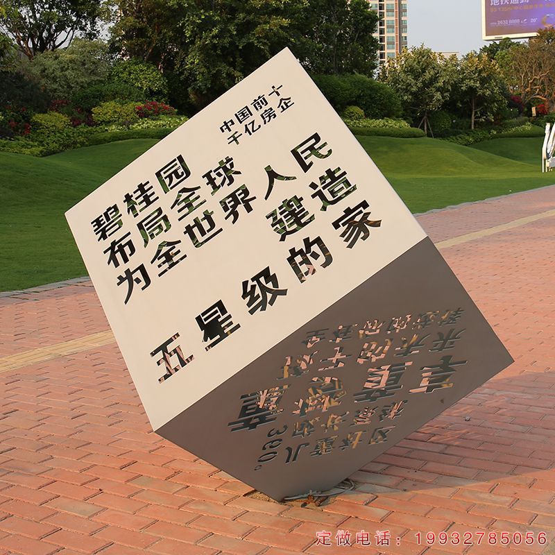 公园不锈钢镂空字魔方雕塑