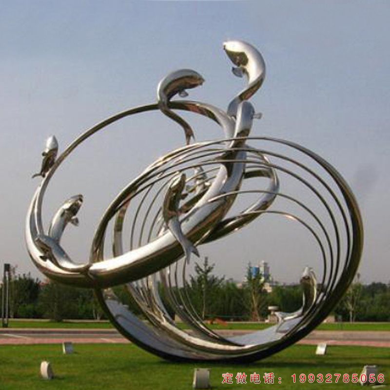 广场不锈钢海豚景观雕塑