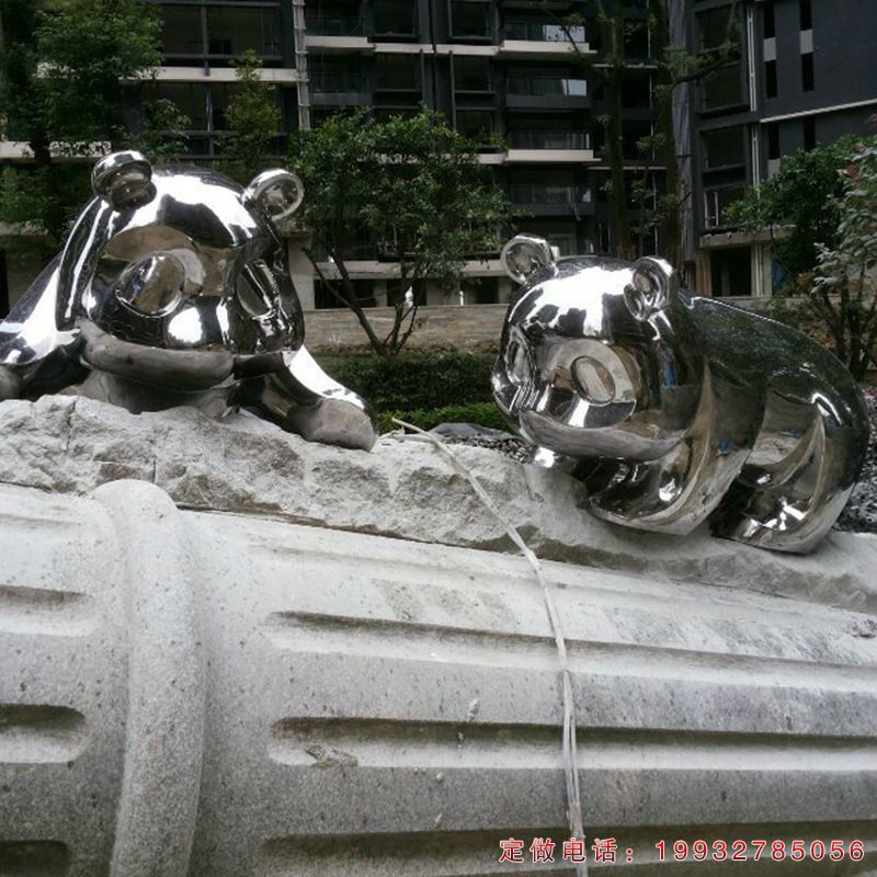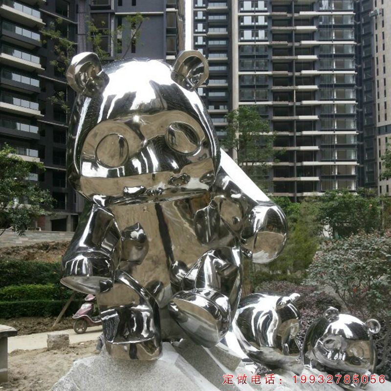 小区不锈钢熊猫动物雕塑