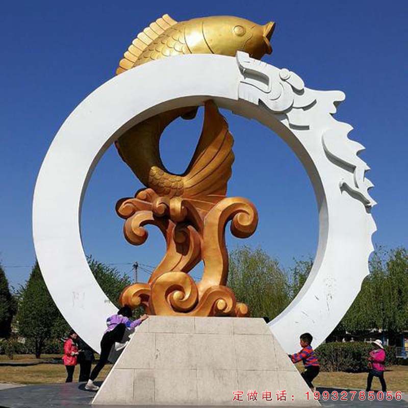 广场不锈钢鲤鱼跃龙门景观雕塑