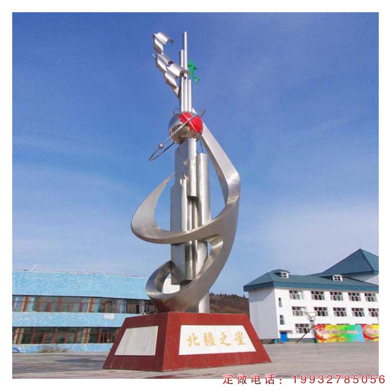 校园雕塑大都运用抽象与象征、隐喻和悖论的手法表现,特别是我国的校园雕塑城市雕塑,一般具有纪念性、象征性、激励性、装饰性等特点铸铜雕塑,突出思想审美、重视德育潜化,或着重表现人类的智慧和对真善美永恒的追求。由于不锈钢具有最普遍的钢种,耐腐蚀性、耐热性、低温强度、机械性能良好。并且深冲压、弯曲等常温加工性能较好,热处理后不会硬化。做抽象雕塑最好的材质就是不锈钢。所以学校的抽象雕塑大多选用不锈钢。