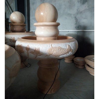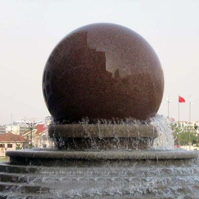 别墅彩霞红双层风水球喷泉石雕