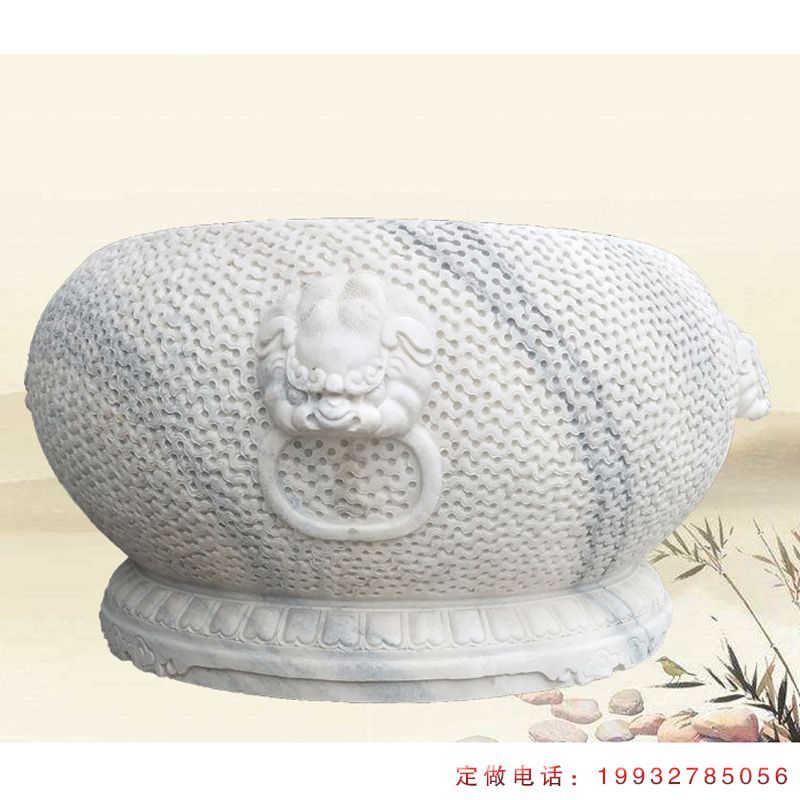 庭院圆形狴犴浮雕水缸石雕