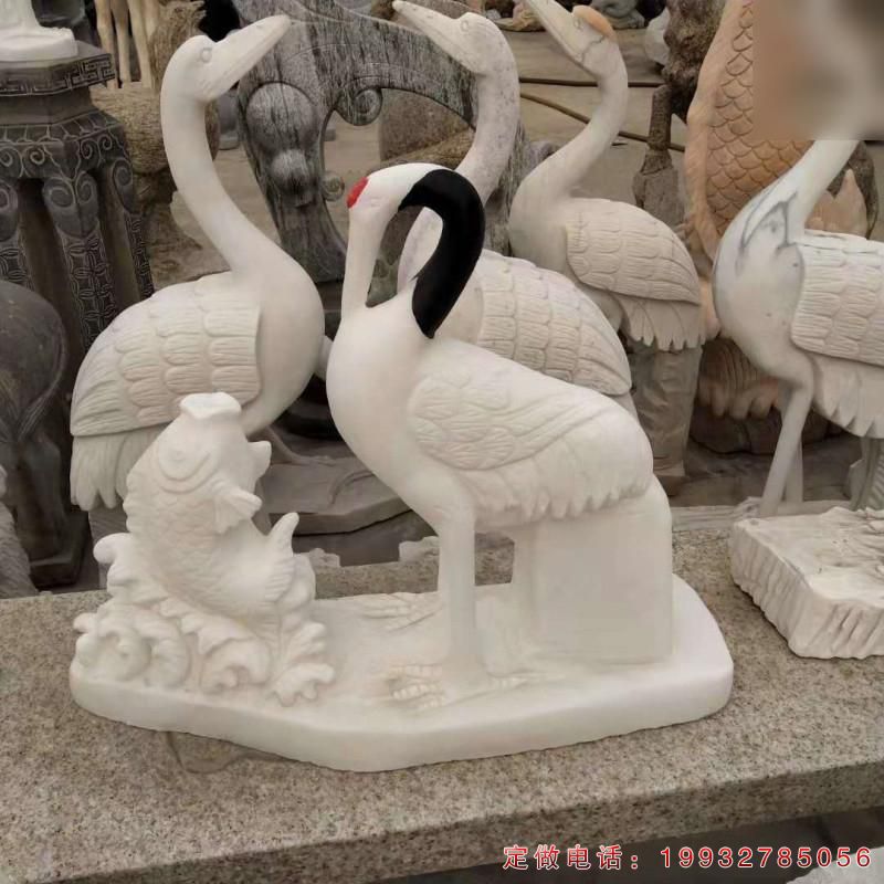 丹顶鹤,通体大多白色,头顶鲜红色,喉和颈黑色,站立时颈、尾部飞羽和脚黑色,头顶红色,其余全为白色。在古代丹顶鹤又称作是仙鹤,很多的石雕仙鹤出现在人们的生活中,雕刻师们就将仙鹤用石头雕刻出来供人们观赏。