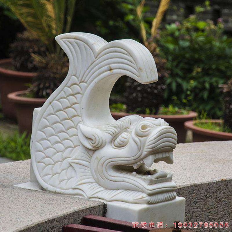 螭吻又叫鱼龙,鱼和龙的结合体,是古代传说龙生九子之一。九子中,螭吻被认为是来源于印度佛教。相传大约在南北朝时,由印度摩羯鱼随佛教传入后变化而来。鱼化龙古喻金榜题名,纹样以鱼、龙组成,寓意高升昌盛。