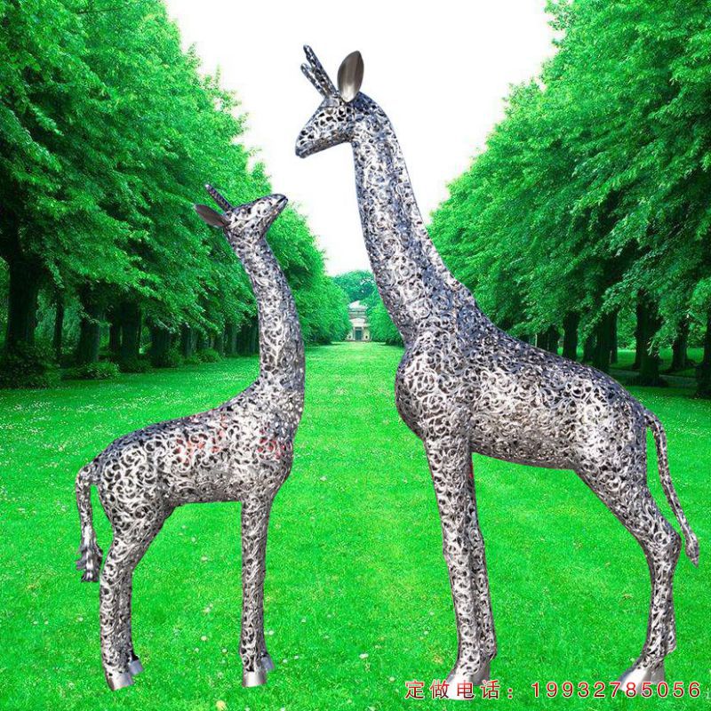 镂空是一种雕刻技术。外面看起来是完整的图案,但里面是空的或者里面又镶嵌小的镂空物件。而随着不锈钢的问世,不锈钢雕塑也随之出现,不锈钢雕塑是在传统石雕的基础上发展起来的一种新兴雕塑种类,因为其特有的明亮、活泼、不易污染、与现代都市生活相符等特点,已经逐渐被大众接受,在市场上所占的份额越来越大,而不锈钢镂空长颈鹿就是不锈钢雕塑的一种。