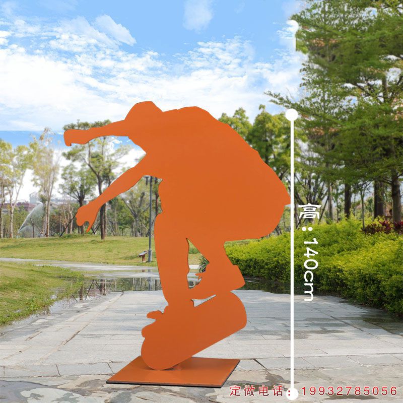 不锈钢滑板运动剪影人物雕塑