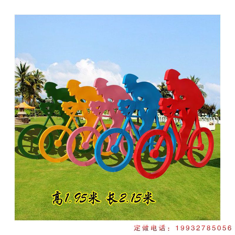 骑赛车彩色不锈钢抽象人物雕塑