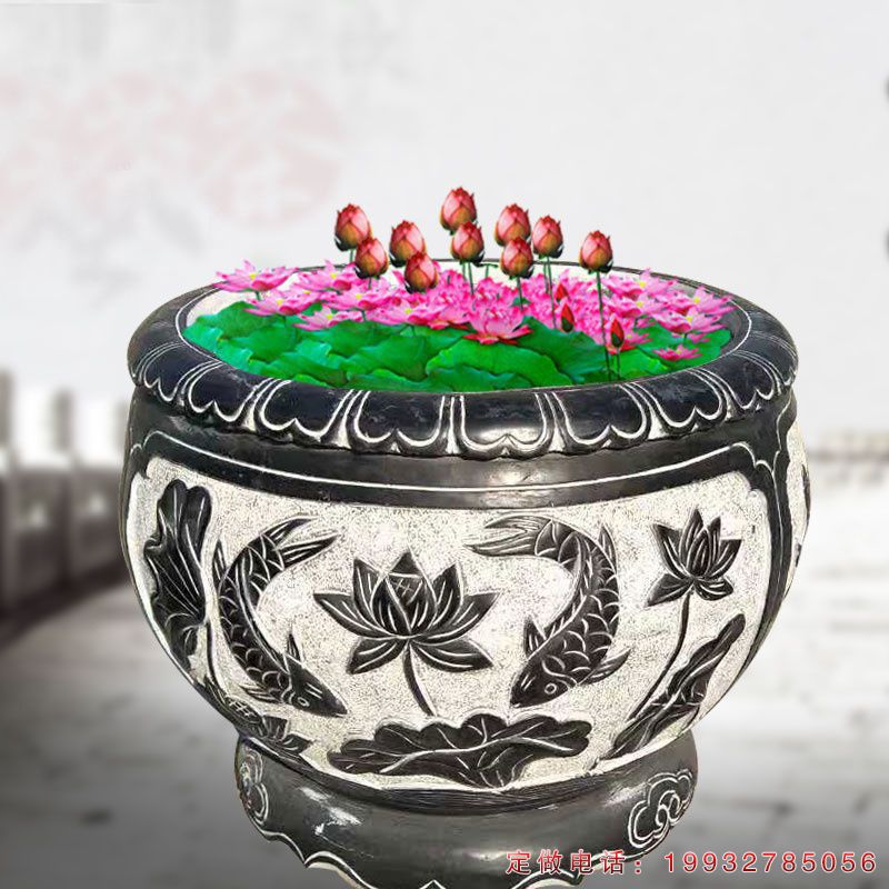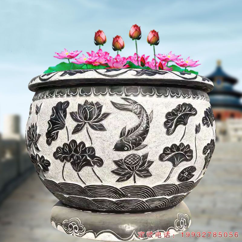 石雕水缸是从古代流传下来的工艺品,不仅有储存水的功能,同时,还具有观赏的作用,石雕水缸不仅可以作为储存使用,同时,还可以养花荷花,或者金鱼,摆放在自家庭院,起观赏的作用。