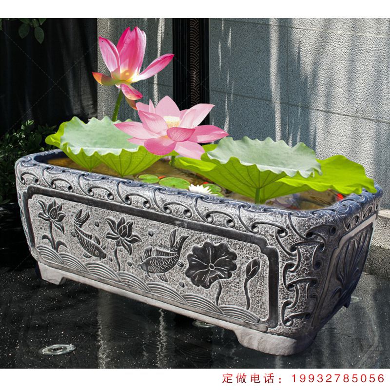 石雕水缸是从古代流传下来的工艺品,不仅有储存水的功能,同时,还具有观赏的作用,石雕水缸不仅可以作为储存使用,同时,还可以养花荷花,或者金鱼,摆放在自家庭院,起观赏的作用。宋代石雕水缸尺寸为直径78公分,高65公分。据传在古代,灶间和屋檐下各放一只水缸,有五石缸、七石缸之分。屋檐下的水缸,下雨时通过水溜,承接檐头水,汇于缸内,是生活用水的主要来源。过年前,要把水挑满,称缸缸满,甏甏满。贴一张青龙甲马以图吉利。石雕水缸,灶间和屋檐下各放一只水缸,有五石缸、七石缸之分。屋檐下的水缸,下雨时通过水溜,承接檐头水,汇于缸内,是生活用水的主要来源。过年前,要把水挑满,称缸缸满,甏甏满。