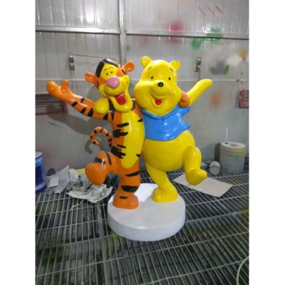 玻璃钢卡通雕塑是近些年来比较流行的一中雕塑的形式。玻璃钢材质具有质轻、耐高温、耐腐蚀等特点,所以玻璃钢卡通雕塑本身比较轻,本身有良好的耐腐蚀性,不会和空气、蒸汽和酸碱发生反应,而且玻璃钢雕塑的设计性非常好,在根据需要制作出各种样式,同时玻璃钢雕塑可以涂抹上各种颜色,色泽非常光亮。玻璃钢材质的出现使得玻璃钢雕塑突破了传统雕塑颜色单一的界限,玻璃钢雕塑更注重色彩的搭配,可以根据地点的不同,进行不同的色彩搭配。玻璃钢是一种以高分子环氧树脂为基体,玻璃钢或碳纤维等为增强体,经过复合工艺而制成的复合材料。它的主要优点轻巧、耐腐蚀、抗老化、防水及绝缘等。玻璃钢雕塑具有很强的装饰性和实用性;注重人物面部刻画,并对塑像加彩,塑绘结合,互相补充,使得作品具有和绘画一样的美感和欣赏价值;注重以形传神,以凝练的人物雕塑语言,表现高度的意象美。