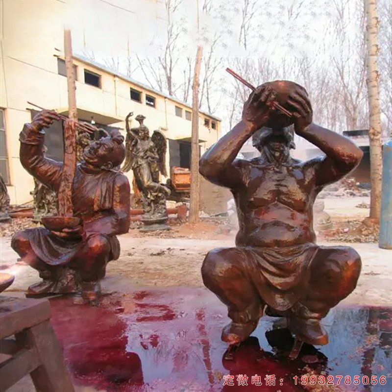 广场吃拉面小品人物铜雕