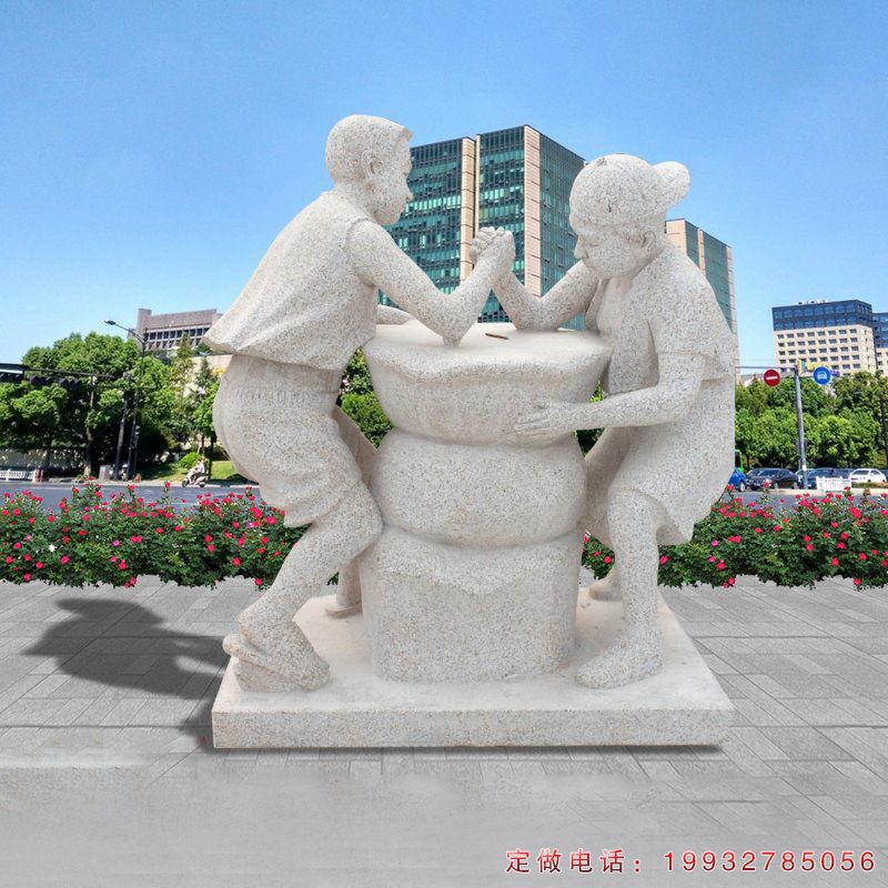 儿童石雕简言之指用各种可塑材料或可雕、可刻的硬质材料创造出具有一定空间的可视、可触的儿童石雕形象。借以反映社会生活、表达艺术家的审美感受、审美情感、审美理想的艺术。 儿童石雕在高楼林立,道路纵横的城市中,作为城市石雕的一部分起到缓解因建筑物集中而带来的拥挤、迫塞和呆板、单一的现象,有时也可在空旷的场地上起到增加平衡的作用。更加带给城市居民一种童心的回归感。儿童石雕存在的意义不仅仅是为了美化我们的生活环境,更多地应该是唤醒每个人内心的那一份童真,那份珍贵的一去不返的美好回忆。栩栩如生的儿童石雕何尝不是我们的心灵鸡汤。