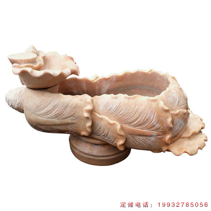 石材雕塑流水盆一般有着明确的结构,一般由三个模块组成,分别为,蓄水池,石雕水钵,石雕水景配套。蓄水池:主要是砖石混凝土结构,外部采用石材,或者马赛克,瓷砖等材料进行铺贴装饰外部,也有直接使用文化石和自然石板来装饰的水池,其功能主要是蓄水,供水和排水,都是在这个蓄水池中完成,一般的蓄水池以圆形为主,方形和其他形状的蓄水池都比较少见。石雕流水盆:石雕水钵也被人称为石雕流水盆,其作用是装饰,并且在水钵中加入喷水和抽水设备,让水流可以完成一整个从下而上,从上而下的行径流程,展示水流的美感,让水流和石材结合的更加紧密。最终完整水流的出,溢,落,吐,喷等展示效果。